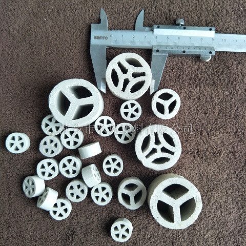 陶瓷三丫環(huán)因其優(yōu)異的工藝加工條件,如原料優(yōu)選,真空擠壓成型以及嚴(yán)格控制燒結(jié)工藝中的火焰氣氛,使得陶瓷三丫環(huán)具有瓷質(zhì)致密,色澤均勻,機(jī)械強(qiáng)度高,耐壓力沖擊,抗熱震性能好,耐搬運(yùn)不破損的優(yōu)點(diǎn)。同時(shí)陶瓷三丫環(huán)結(jié)構(gòu)空間性能好,床層使用通氣量大、比表面大、氣液分布均勻、阻力小、壓降低、強(qiáng)度高、氣液傳質(zhì)性能比一般填料好。